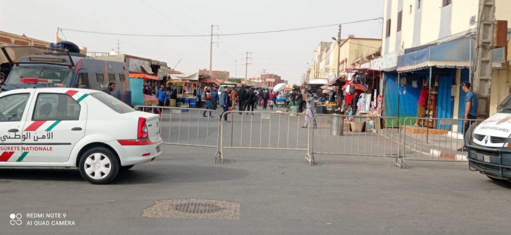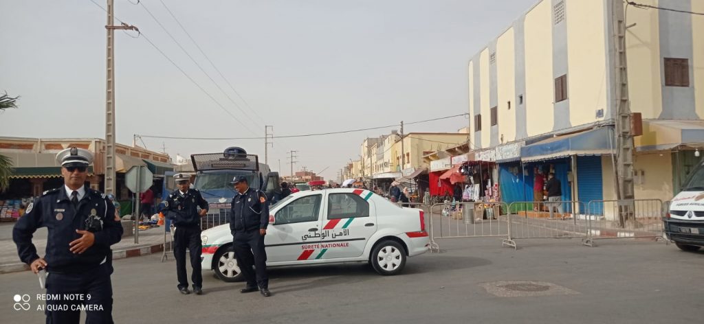 حيث يتم توزيع رجل الامن والقوات المساعدة على الجانبين لتأمين الإنسيابية العادية والمحافظة على استثباب الامن وهذا ما استحسنته الساكنة الى جانب التجار ايضا.