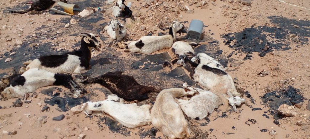 توصل موقع النهار24 بشكاية من العديد من الكسابة بعد ان نفقت أغنامهم شرق مدينة الداخلة وبالضبط بمنطقة بئر انزران ام دريكة التي تبعد حوالي 170 كيلومتر شرق المدينة بسبب. مخالفات الاشغال من المغلف الحام ( الزفت ) الذي تسببت فيه الشركة المكلفة باشغال هذا المقطع والذي سقطت فيه مجموعة من الاغنام مما أدى إلى نفوقها. وإصابة العديد منها بكسور