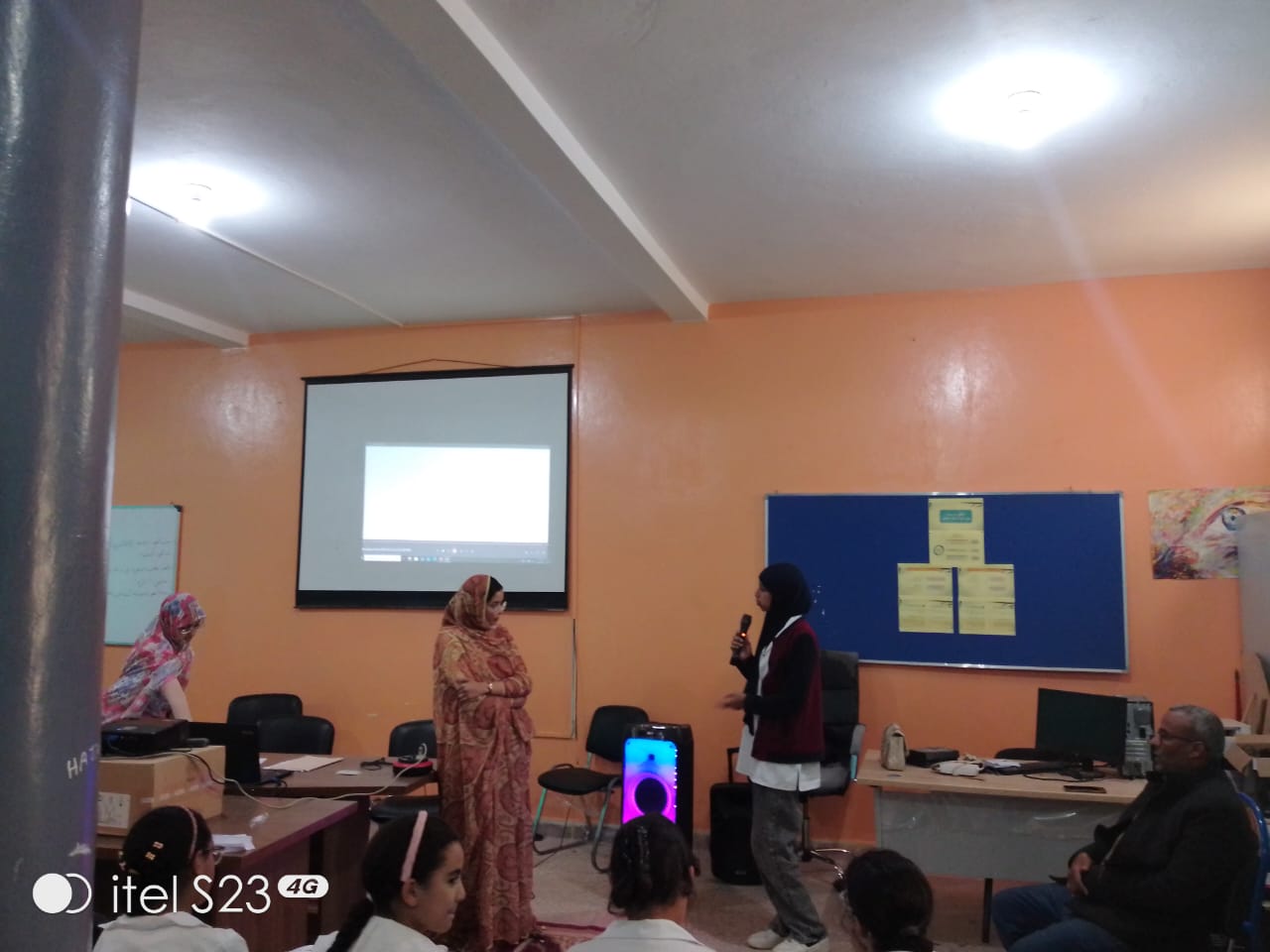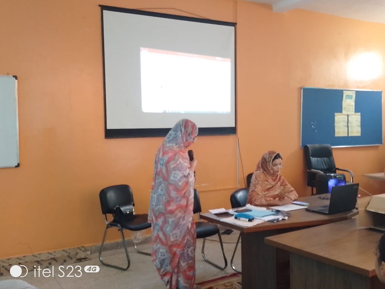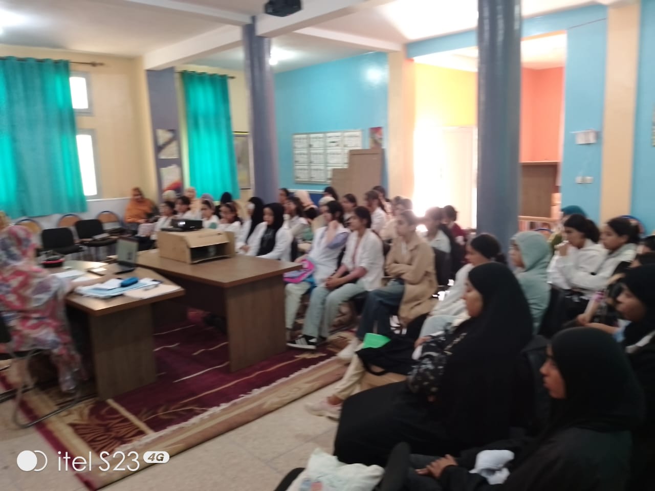 وخلال هذا اللقاء التوعوي ألقت المشرفة الإجتماعية للفضاء المتعدد الوظائف للنساء ببوجدور مداخلة  حول موضوع الحملة التحسيسية : في الحد من ظاهرة العنف ضد النساء والفتيات بالوسط المدرسي”