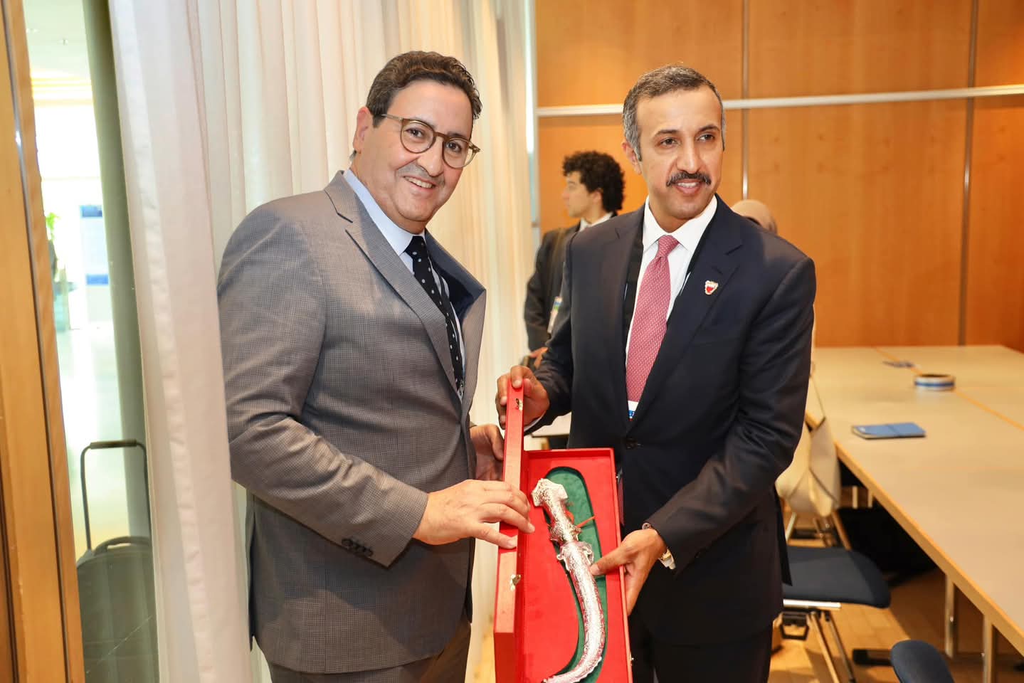 على هامش اشغال المنتدى الدولي للنقل بمدينة لايبزيغ استقبل يومه الأربعاء 21 ماي 2025 عبدالصمد قيوح وزير النقل واللوجيستيك الدكتور الشيخ عبدالله بن أحمد الخليفة وزير النقل والمواصلات البحريني. حيث تناول الوزيران سبل تعزيز التعاون وتبادل الخبرة بين البلدين في مجالات النقل البحري والنقل الجوي. وقد استعرض الوزير قيوح خلال هذا اللقاء إمكانيات ومؤهلات المملكة المغربية في مجال البنية التحتية والموانىء وكذلك الخبرة التي راكمتها المملكة المغربية في ما يخص تدبير الأنشطة المينائية مع إبراز خصوصية بعض الموانىء مثل ميناء طنجة المتوسط وميناء الدارالبيضاء وأكادير والناظور وكذلك ميناء الداخلة الذي سيشكل قريبا بوابة المغرب والساحل الأفريقي نحو جنوب القارة وكذلك امريكا اللاتينية..