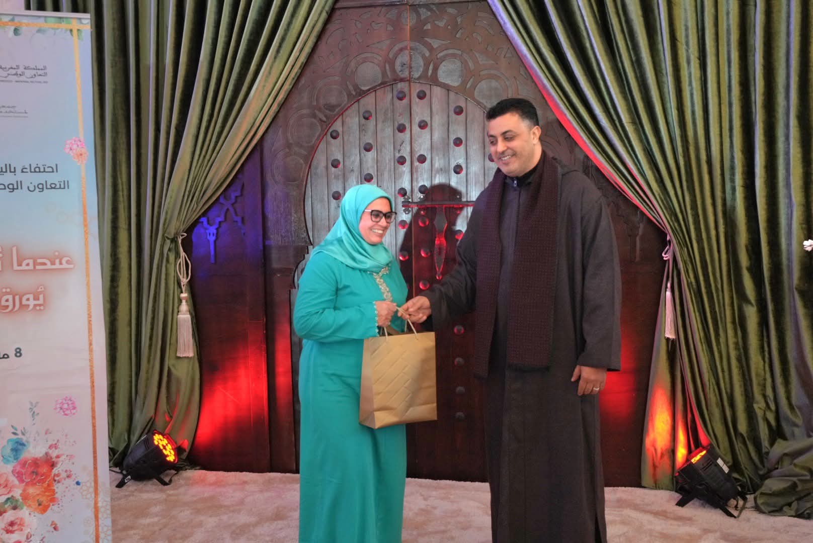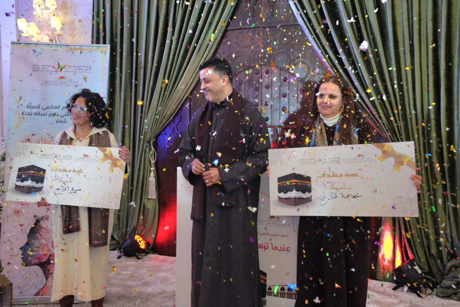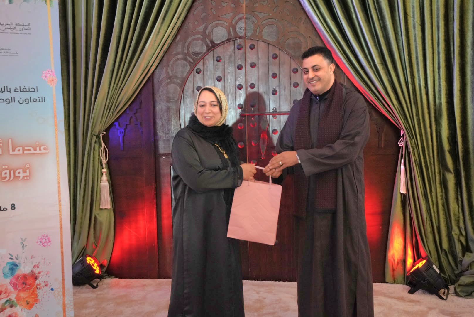 وقد أشرف المجاهدي مدير التعاون الوطني على إعطاء جوائز تكريمية عرفانا بالعطاء النسائي، وبمجهودات نسوة مقبلات على التقاعد أبلين البلاء الحسن في مسار مهني كله إخلاص، وانخراط في خدمة العمل الاجتماعي والتضامني. وقد تخللت هذه الأمسية الراقية التي سهر على إنجاحها أطر وأعضاء بجمعية الأعمال الاجتماعية للمؤسسة، فقرات فنية متنوعة من المديح، و وازدانت بمفاجئة إجراء قرعة رحلة العمرة للديار المقدسة والتي أسفرت عن اختيار فائزتين.