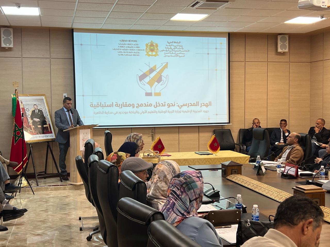 شكل هذا اللقاء الدراسي، المنظم تحت شعار “الهدر المدرسي بين المقاربة التربوية والحماية القانونية: نحو تدخل مندمج”، مناسبة لتقديم مجموعة من المداخلات التأطيرية، من بينها مداخلة النيابة العامة لدى المحكمة الابتدائية ببوجدور حول أدوار النيابة العامة في الحد من ظاهرة الهدر المدرسي، قدمها الأستاذ *حمزة بطاش نائب وكيل الملك لدى المحكمة الابتدائية ببوجدور، إلى جانب مداخلة المديرية الإقليمية حول المقاربات التربوية المعتمدة للحد من الظاهرة، قدمها السيد محمد مطيع، مكلف بتدبير مصلحة الشؤون التربوية والتخطيط والخريطة المدرسية.